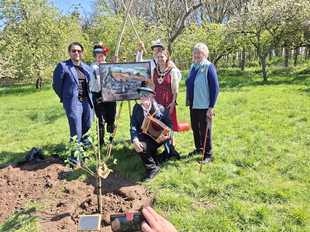 And so we did, in the company of The Lady Mayor of Stratford upon Avon, a member of the famous Bramley family, artists, academics and tree lovers from Warwickshire to Japan. We processed through the orchard, sang a wassail, planted the tree, performed a couple of two man jigs then taught the crowd The Shepherds Hey.